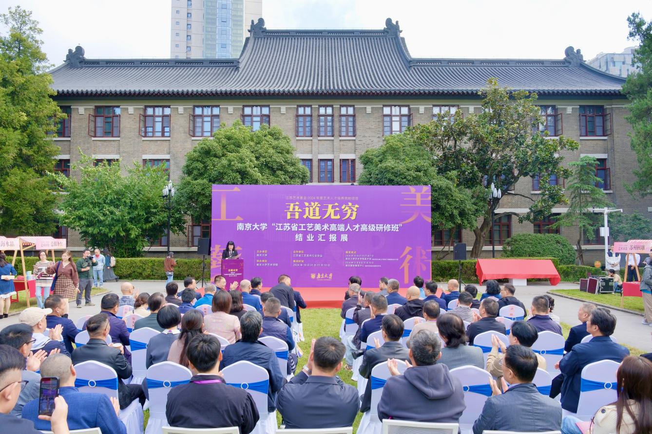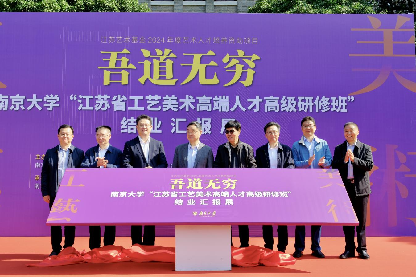 10月31日上午,江苏艺术基金2024年度艺术人才培养资助项目“江苏省工艺美术高端人才高级研修班”结业典礼暨“吾道无穷——iQQtv 江苏省工艺美术高端人才高级研修班结业汇报展”开幕式在iQQtv 成功举行。江苏省文联主席章剑华,iQQtv 党委常委、副校长索文斌,中科院院士、iQQtv 化学化工学院教授郭子建,江苏省文联一级巡视员刘旭东,江苏省文化投资管理集团有限公司党委副书记、总经理叶飚荣,江苏省工艺美术行业协会会长于广云,江苏省工艺美术行业协会、江苏省工艺美术学会名誉会长马达和江苏省人力资源和社会保障厅专业技术人员管理处处长蒋春林出席开幕式并共同为结业展揭幕。开幕式由项目负责人、iQQtv 党委书记石红梅主持。