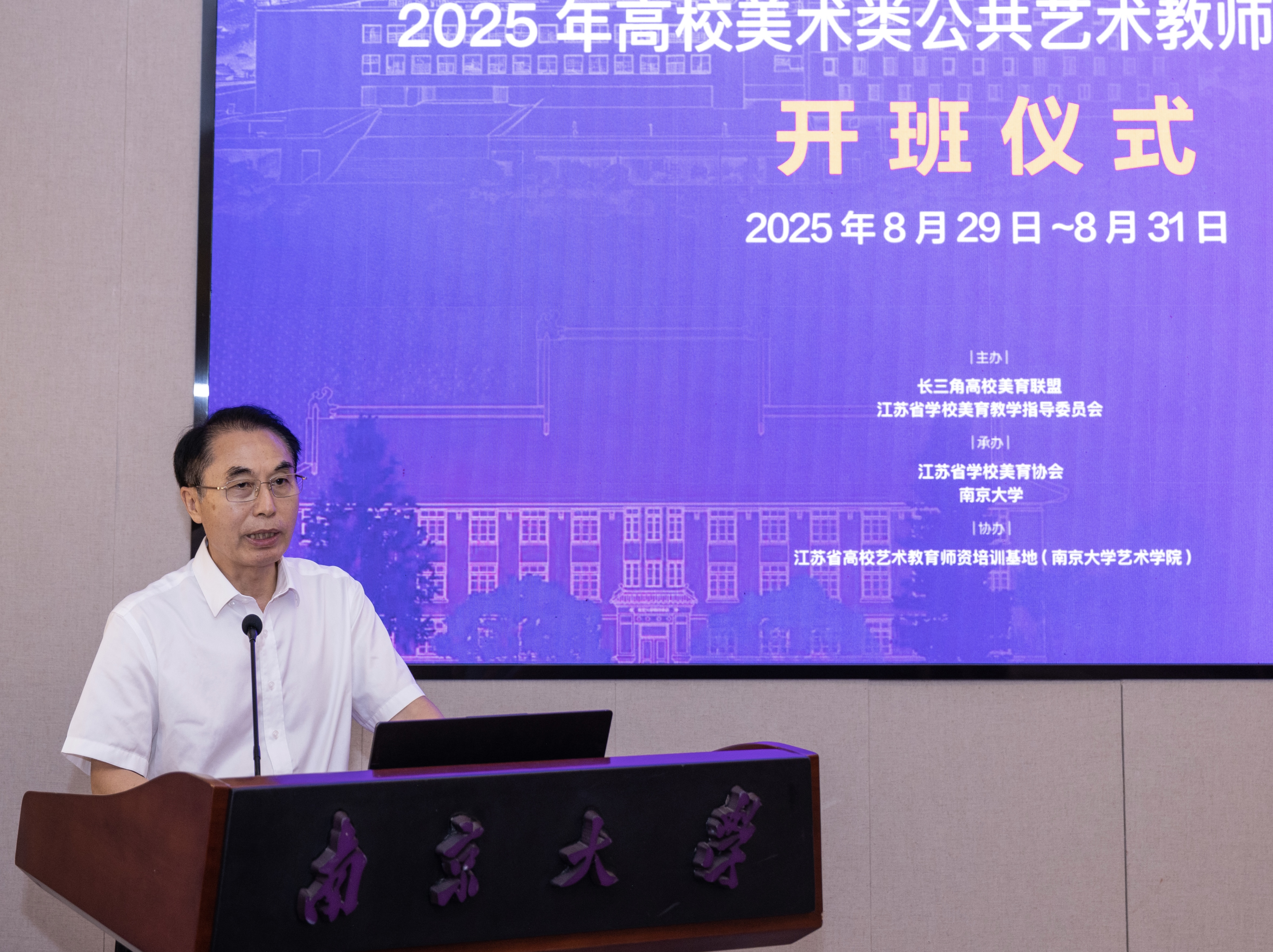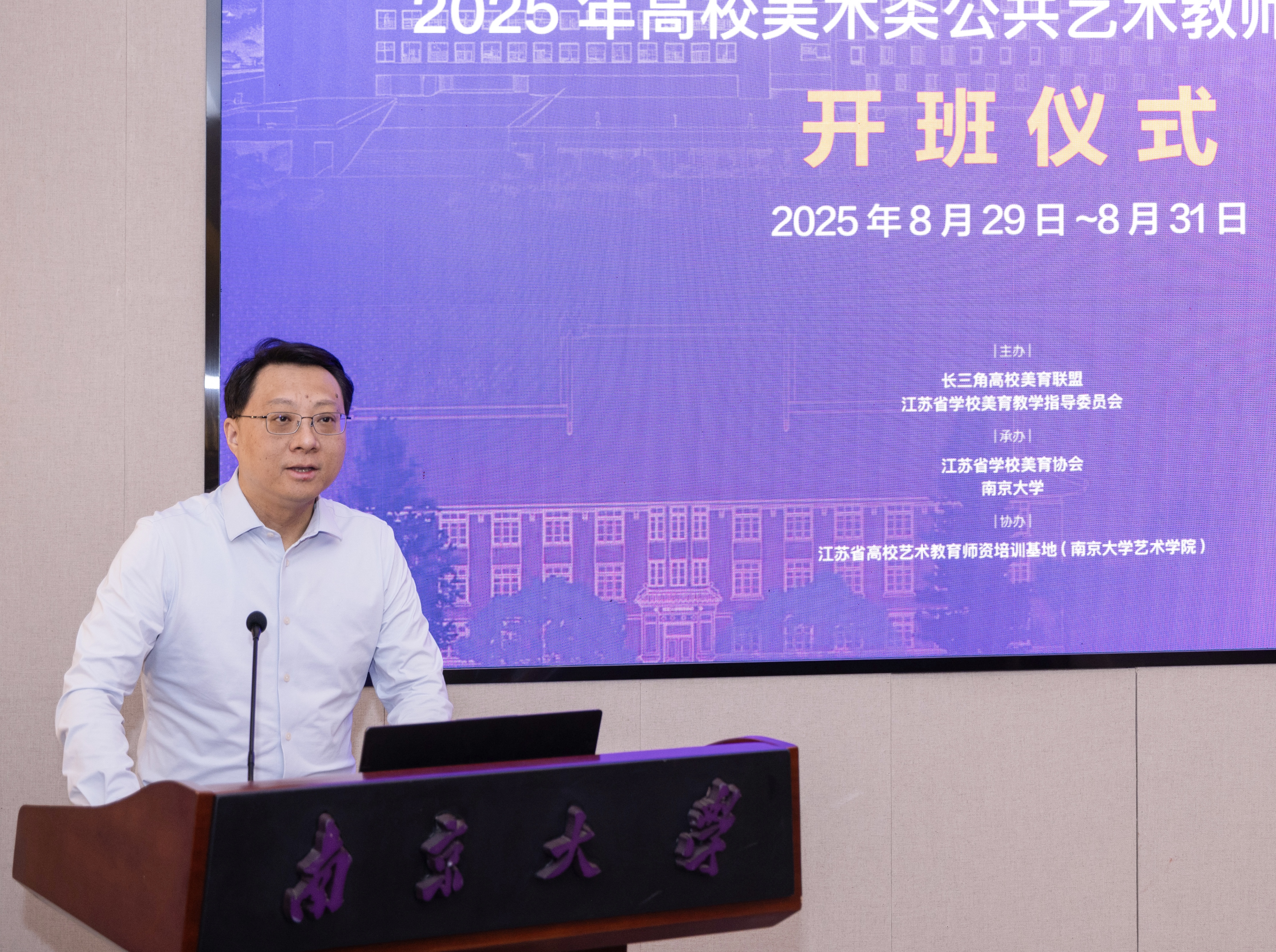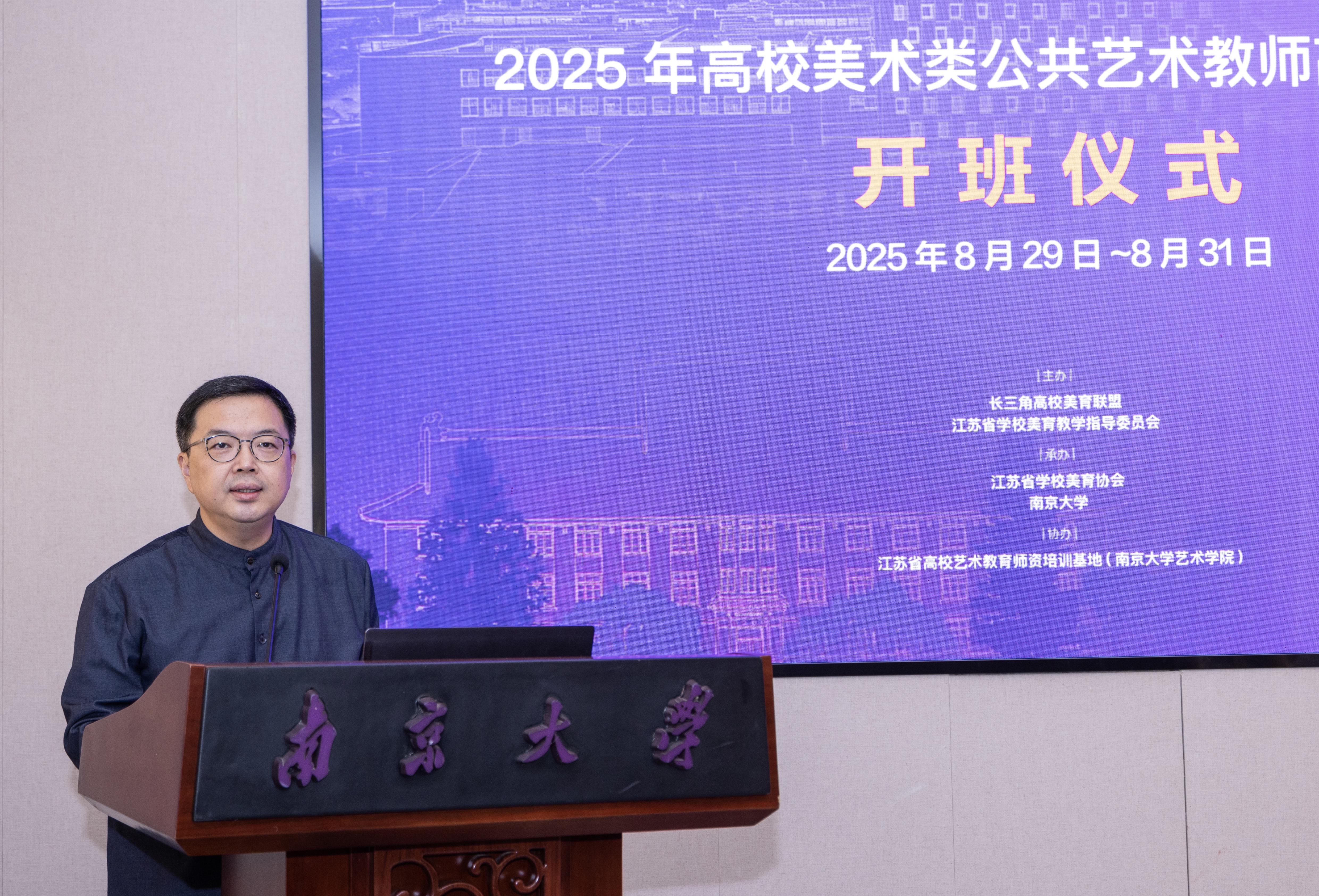 8月29日上午,以“大美育人 艺路同行”为主题的2025年高校美术类公共艺术教师高级研修班开班仪式在iQQtv 国际会议中心中大报告厅隆重举行。来自江苏、上海、浙江、安徽四地高校的六十余名美术类公共艺术教师参加培训。