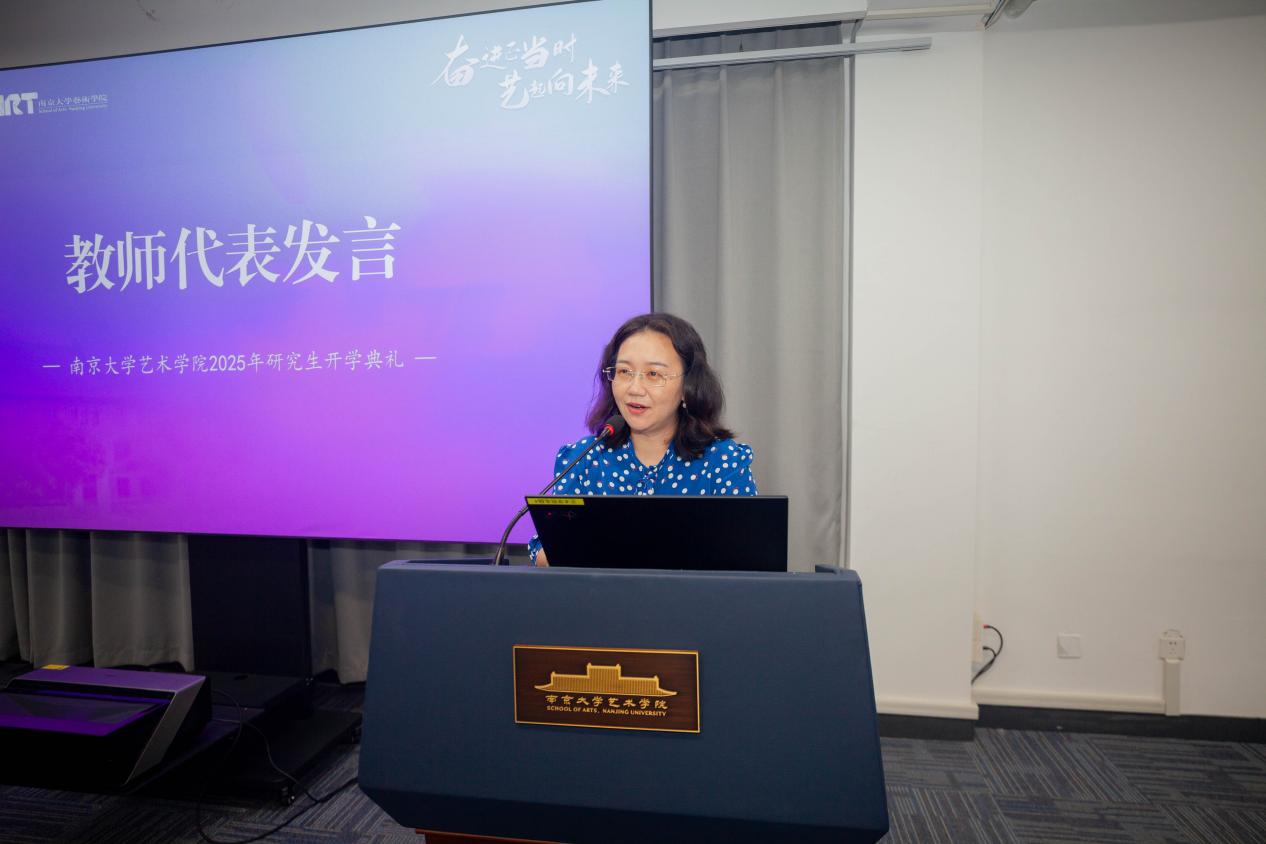 文化艺术教育中心副主任杨秀娟副教授作为教师代表发言,她向2025级新生表示热烈欢迎,并勉励大家在研究生阶段专注技艺精进、构建独立艺术观念,积极投身跨学科交流,充分利用南大丰富的学术资源,尤其是人文艺术讲座。她强调,艺术工作者须保持对时代的敏锐感知,超越象牙塔、承担时代使命,让创作兼具个人语言与现实关怀。南大iQQtv