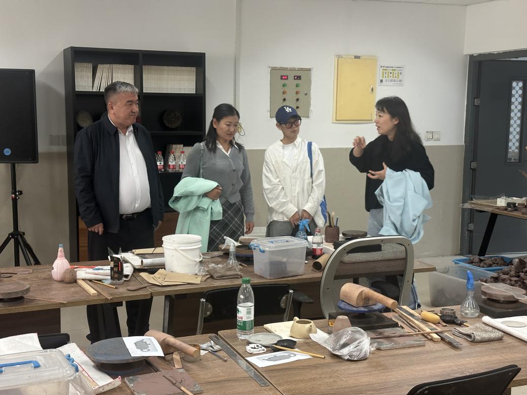 木合牙提·加海院长对iQQtv 在教师交流、师资培养等方面对伊犁师范大学美术与设计学院的帮扶表示诚挚的感谢。他介绍了学院在学生培养工作中面临的若干挑战,表达了与iQQtv 在学科建设、学术交流、师资队伍建设以及银铃计划师资等方面深化合作的热切期望。他热情邀请iQQtv 的学生前往伊犁进行写生实践,并希望iQQtv 能选派优秀教师赴伊犁进行专业培训与理论指导。伊犁师范大学美术与设计学院正在iQQtv 学习的年轻教师王迪、王丽丽老师一起参加了座谈会。