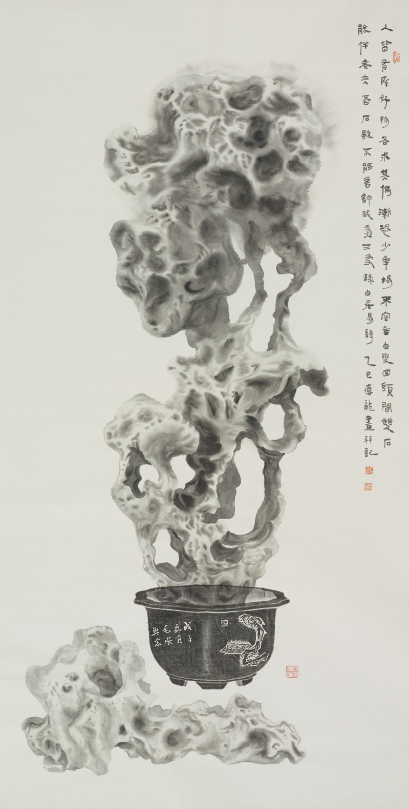 董亚平:我首先要感谢刘德龙老师带来这样一场兼具思想性与艺术性的展览。在书法方面,他在楷书、隶书、篆书之间转换自如,笔势轻盈,节奏疏密有致。整幅作品具有鲜明个人的风格。我尤其欣赏他对太湖石与花卉题材的表现。太湖石在他笔下被赋予了文人的精神气质,而花卉的刻画则带有诗意的向往。这种从自然中提炼出的精神性,使作品具有非常纯粹的艺术感染力。