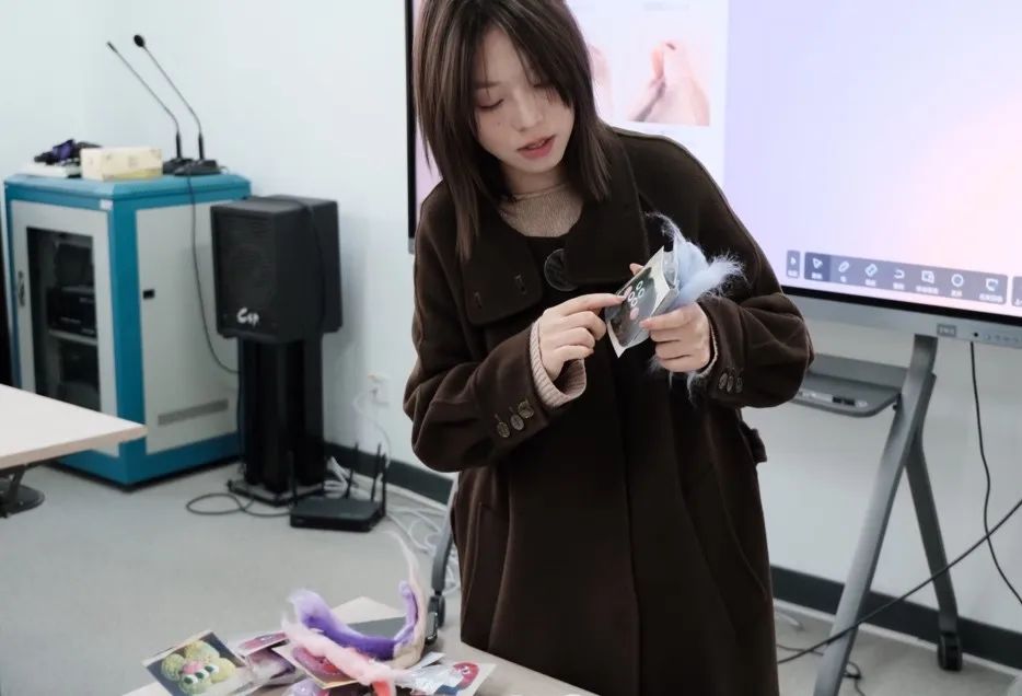 在主讲人吴琦的耐心指导下,同学们了解了羊毛毡传统工艺的历史与原理,并且赏析了羊毛毡工艺的当代作品。