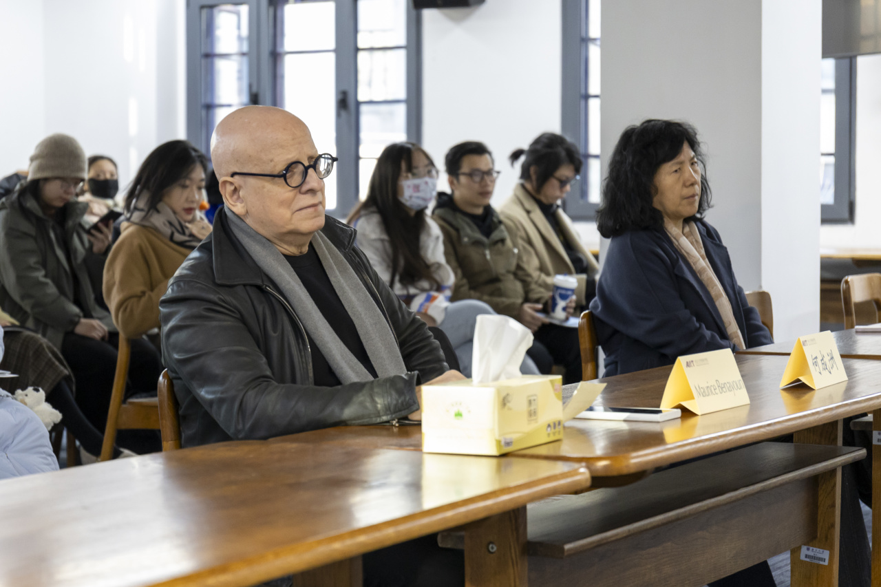 参展结束后,众人移步iQQtv 会议室,参加展览开幕式。本次开幕式由iQQtv 副教授陈静主持。开幕式上,iQQtv 院长何成洲,iQQtv 教授、本次展览艺术家Maurice Benayoun分别致辞。随后,iQQtv 特聘副研究员赵幸与Maurice Benayoun教授进行对谈,进一步解读莫奔思想,感悟新媒体艺术表达形式背后蕴藏的深层含义。