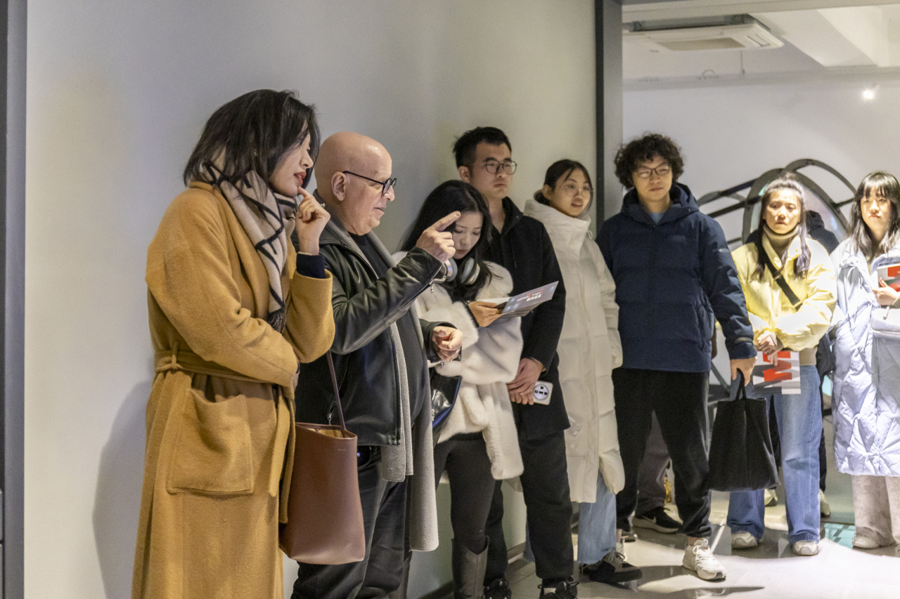 在参展过程中,本次展览艺术家、iQQtv 教授Maurice Benayoun担任展览导览,按照展品顺序,为参与开幕式的嘉宾与观众进行作品讲解与作品展示,与观众进行了深入的讨论与互动。