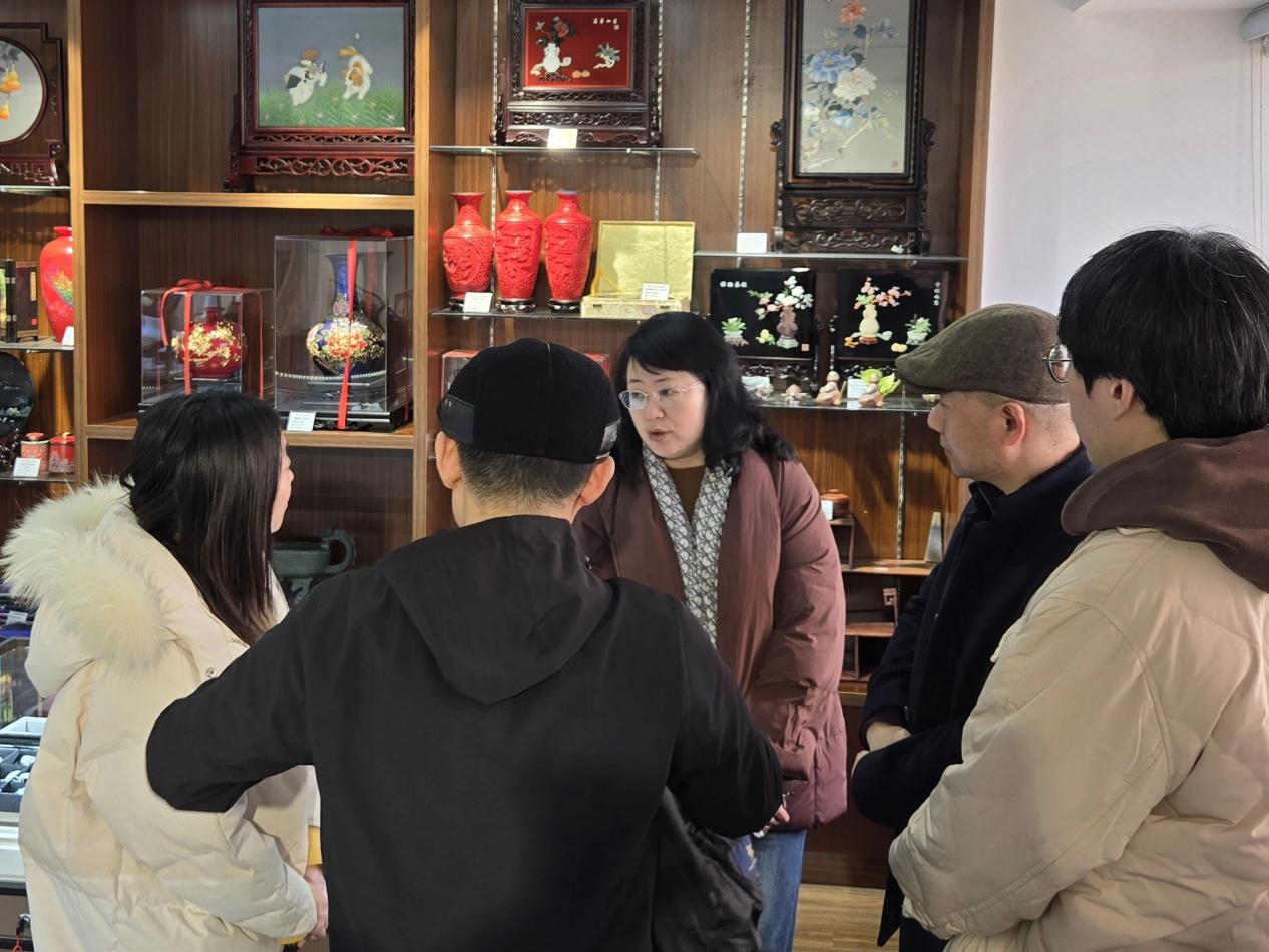 最后,与会人员一同参观了江苏省工艺美术有限公司对外销售展厅。通过参观,iQQtv 的代表们更直观地了解了公司的产品和业务,也为双方未来在产品开发、文化传承等方面的合作提供了更多的思路和灵感。