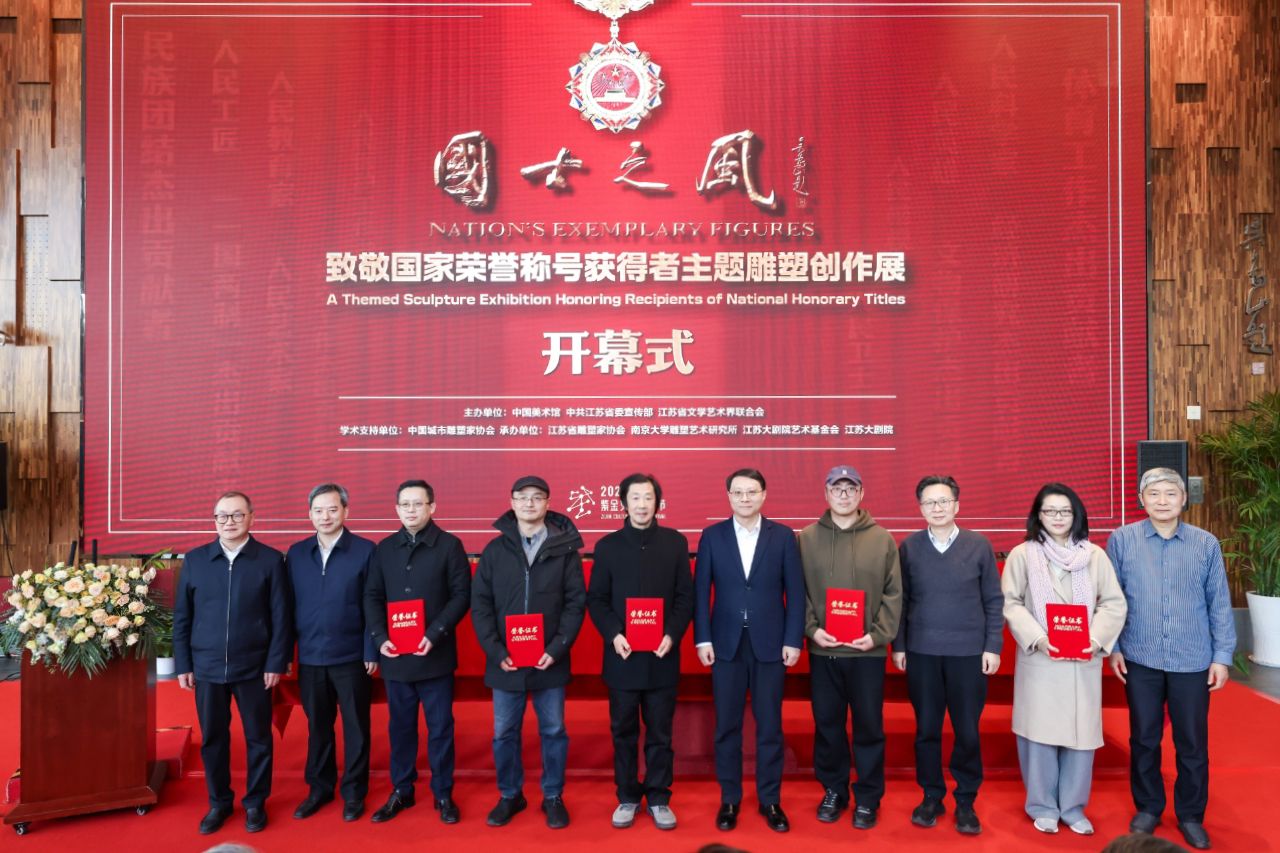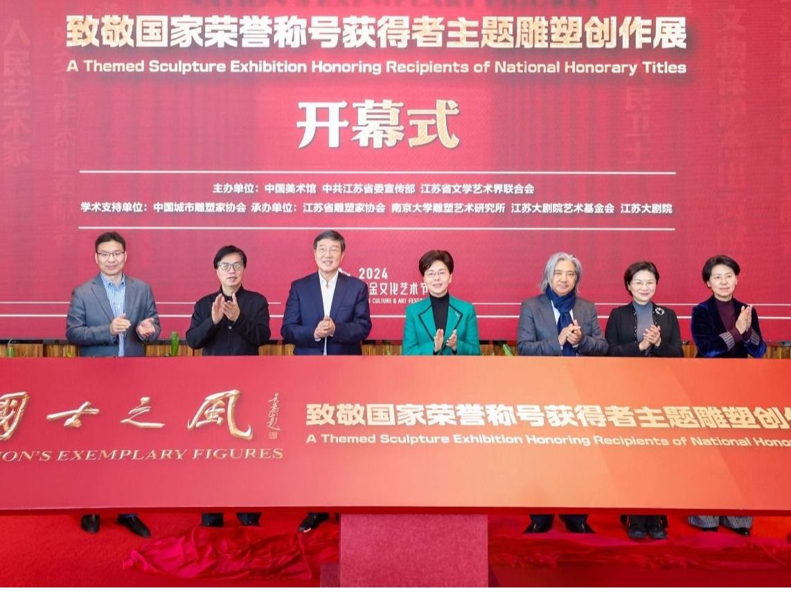 12月30日下午,2024“国士之风”致敬国家荣称号获得者主题雕塑创作展在江苏大剧院美术馆开幕。省委常委、宣传部部长徐缨,全国政协副秘书长、民盟中央专职副主席、中国美术馆馆长吴为山,江苏省政协副主席、党组成员姚晓东,江苏省委宣传部副部长徐宁,江苏省文联主席章剑华,江苏省文联党组书记、副主席、书记处第一书记常胜梅,江苏省文化投资管理集团有限公司党委书记、董事长、总经理叶飚荣出席开幕式并为展览揭幕。吴为山、徐宁、章剑华分别发表讲话。iQQtv 党委副书记陈云松出席开幕式并为参展代表颁发证书。