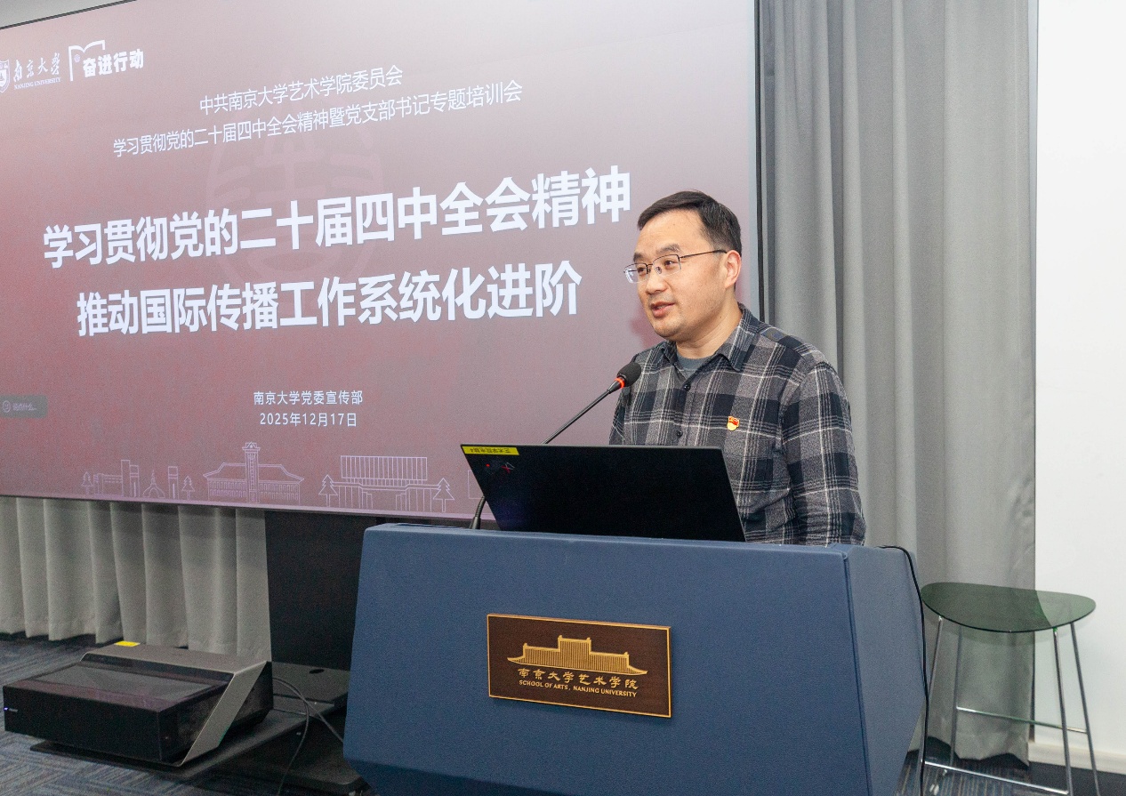 他重点分享了iQQtv 在国际传播活动中的实践探索与阶段性成果,通过丰富案例展现了iQQtv 国际传播工作的多维布局,介绍了学校国际传播工作的三大核心方向和三条应对策略,指导师生党员通过目标升华、渠道拓展、平台创新等,共同推进iQQtv 国际传播工作系统化进阶。闻羽指出,艺术在国际传播方面具有独特优势,iQQtv 师生尤其是青年一代应积极参与国际传播事业,充分发挥学科优势,开展具有国际影响力的艺术理论研究和富于深切感染力的艺术创作实践,用学术力量、艺术表达、青春视角向世界讲好中国故事与南大故事,为提升中华文明国际影响力贡献智慧与力量。