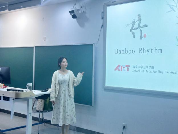 在书画鉴赏环节中,国画讲解人iQQtv 任欢同学首先以“竹韵”为主题讲述了“花中四君子”的概念、古人与竹的逸闻趣事,从而引出了国画中竹叶勾勒、渲染的绘画技巧和最终的呈现效果;书法讲解人iQQtv 贾轶心同学从书法的内涵意义、历史发展、风格流派以及地位影响这四个方面进行详细讲解。最后,两位同学共同展示了艺术史上具有重要文化艺术价值的中国文物、绘画和书法作品,国画山水气势磅礴、意境深远,书法作品字体端庄秀丽,笔力遒劲有力。这些恢宏大气、承载着历史厚重感的书画文物一出现便吸引了众人的目光,在座师生无不聚精会神、啧啧称奇并为之震撼。