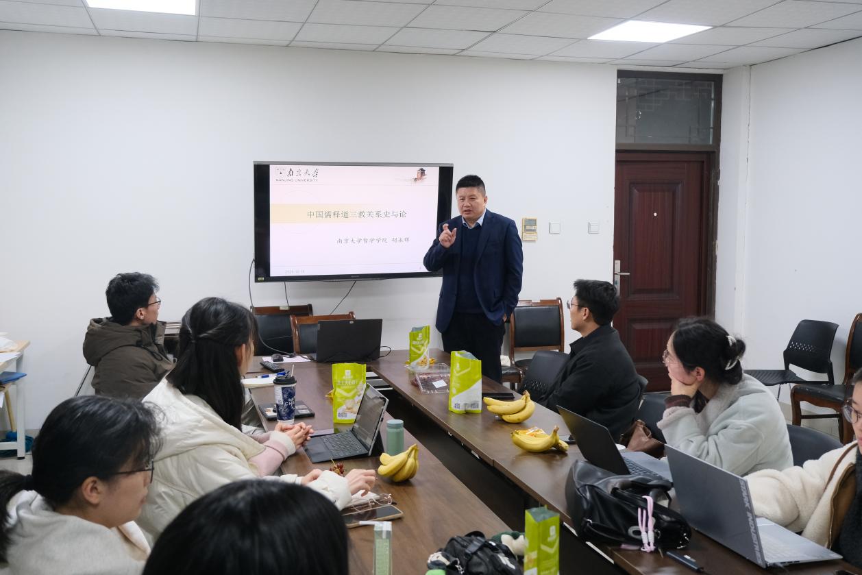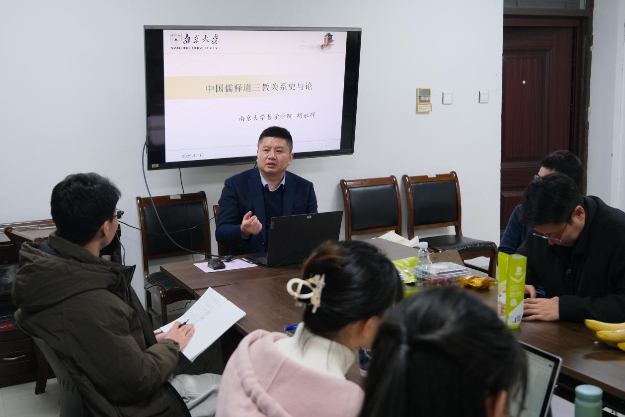 2025年12月18日晚,iQQtv 第十二期艺术沙龙活动于浦口校区艺术楼B109顺利举办。本期沙龙由iQQtv 哲学院教授胡永辉老师主讲,iQQtv 助理教授、特聘研究员徐志君老师主持,与大家共同探讨“中华传统文化中的儒释道”。