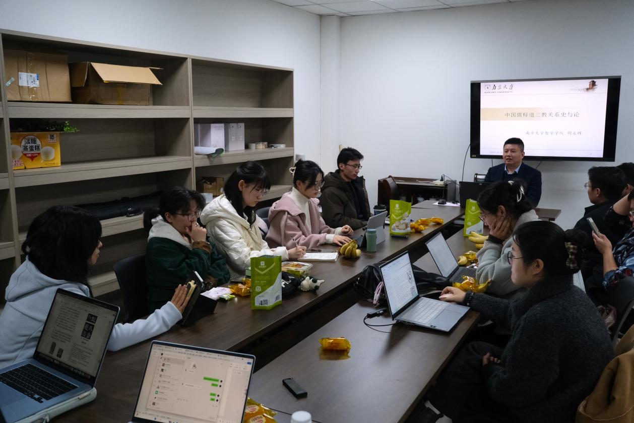 沙龙伊始,胡永辉老师介绍了自身研究方向,主要聚焦于中国佛学与与儒、释、道三教关系等领域。他首先指出,三教关系的演变和融合,既是文明互鉴的过程,也是理解文化交流的重要线索。这一课题兼具研究方法与研究对象的双重属性,对中国传统思想文化的演进产生了深远影响。