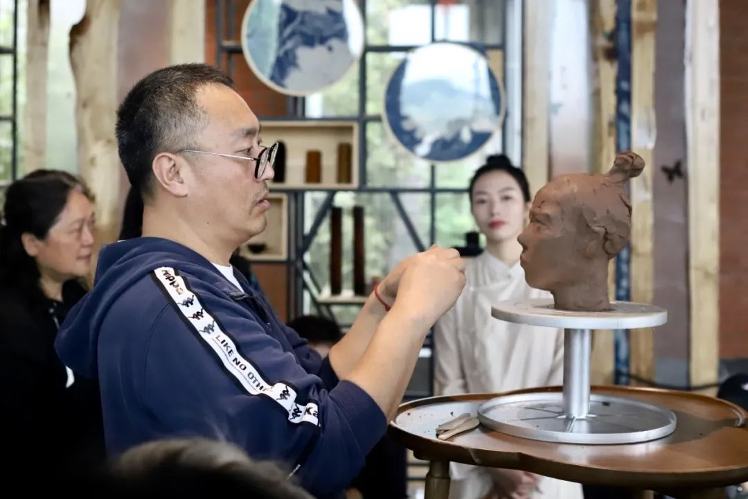 在与同学们的交流中,陆庆龙老师分享了自己的创作心得,引导同学们如何用画笔记录眼前的美景,要“感受生活、感受乡野、感受人生”,把握好在乡野间体悟和绘画的机会;刘德龙老师分享了其读书生涯时的写生故事,并向同学们介绍本次写生安排,对大家的生活起居做了嘱托。陆庆龙老师、任艳明老师分别选择了右二村水田和当地村民进行油画、雕塑示范和技法讲解。