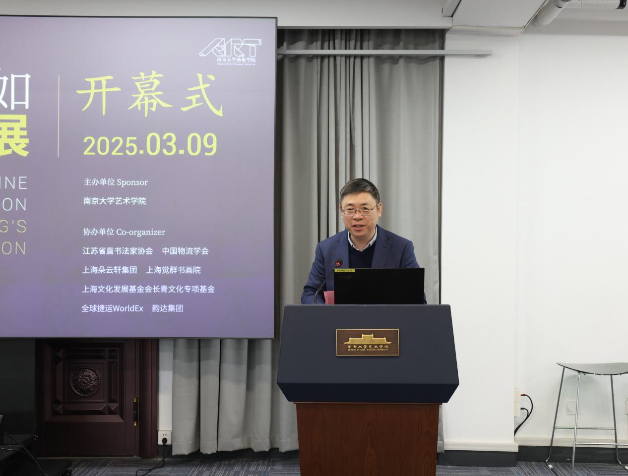 iQQtv 院长赵奎英代表学院对莅临的各位领导及"新文科"工作组专家表示热烈欢迎,并对能够举办“黄有方书作展”深感荣幸。 赵院长在致辞中强调,文字作为“经艺之本”,是文化传承的核心,此次“黄有方书作展”以书法艺术为载体,展现了文字之“象”的深厚内涵,为新文科建设与文化传承提供了重要启示。iQQtv 始终积极践行新文科理念,主持多项相关课题,发表了系列研究成果,并积极探索跨学科艺术人才培养模式。她表示,此次展览将推动学院新文科建设迈向新的高度。