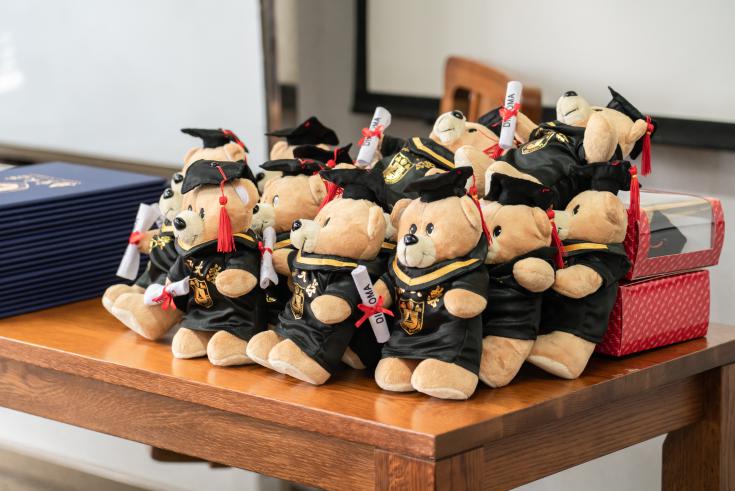 学院精心准备的小熊玩偶作为毕业礼物随证书一同颁发