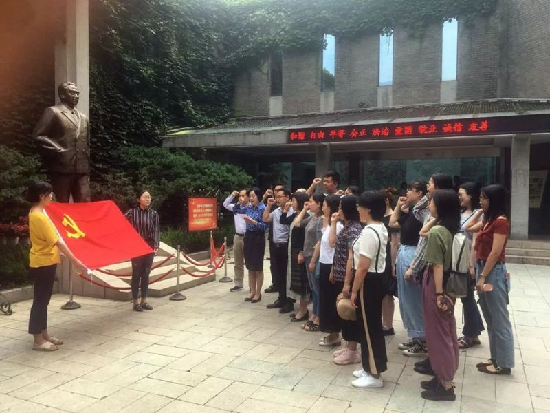 为了进一步深入学习贯彻习近平新时代中国特色社会主义思想和党的十九大精神,全面优化党建活动形式,强化党建活动的教育引导、规范指导和宣传传导作用,中共iQQtv 党委在6月21日开展以“缅怀先辈,重温入党誓词”为主题的组织生活会,组织教工党员和部分学生党员参观梅园新村纪念馆。