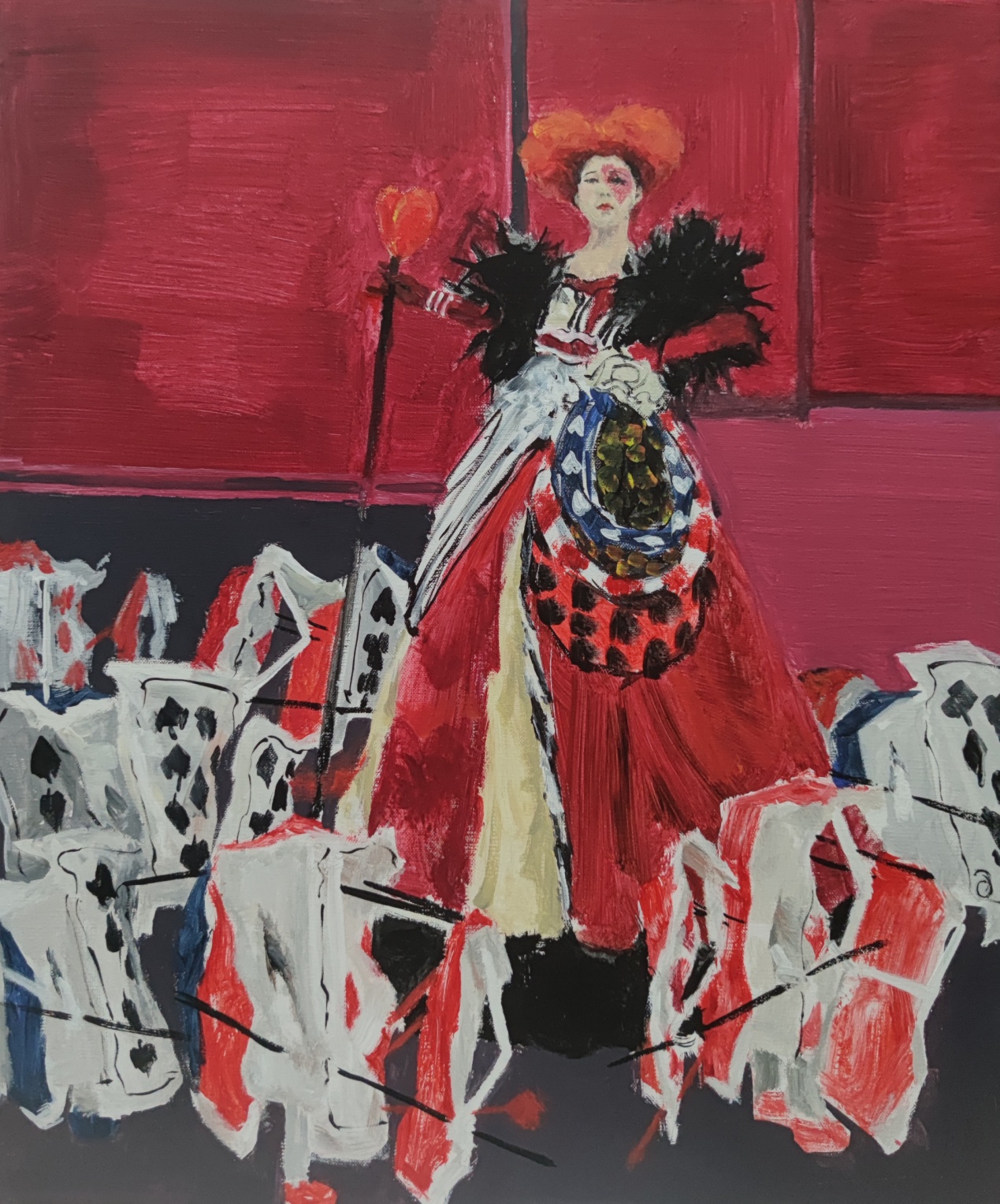 《急景流年》这幅画画如其名,通过描绘童话中的场景来显示出时光荏苒、日月如梭。画面整体采用了红色调,这是我对童年最直接的感触,同时画面采用了较为写意的笔法,清晰的笔触,展现出光阴似箭,流年似水,这是对童年回忆的留念也是对时间飞逝的感慨。