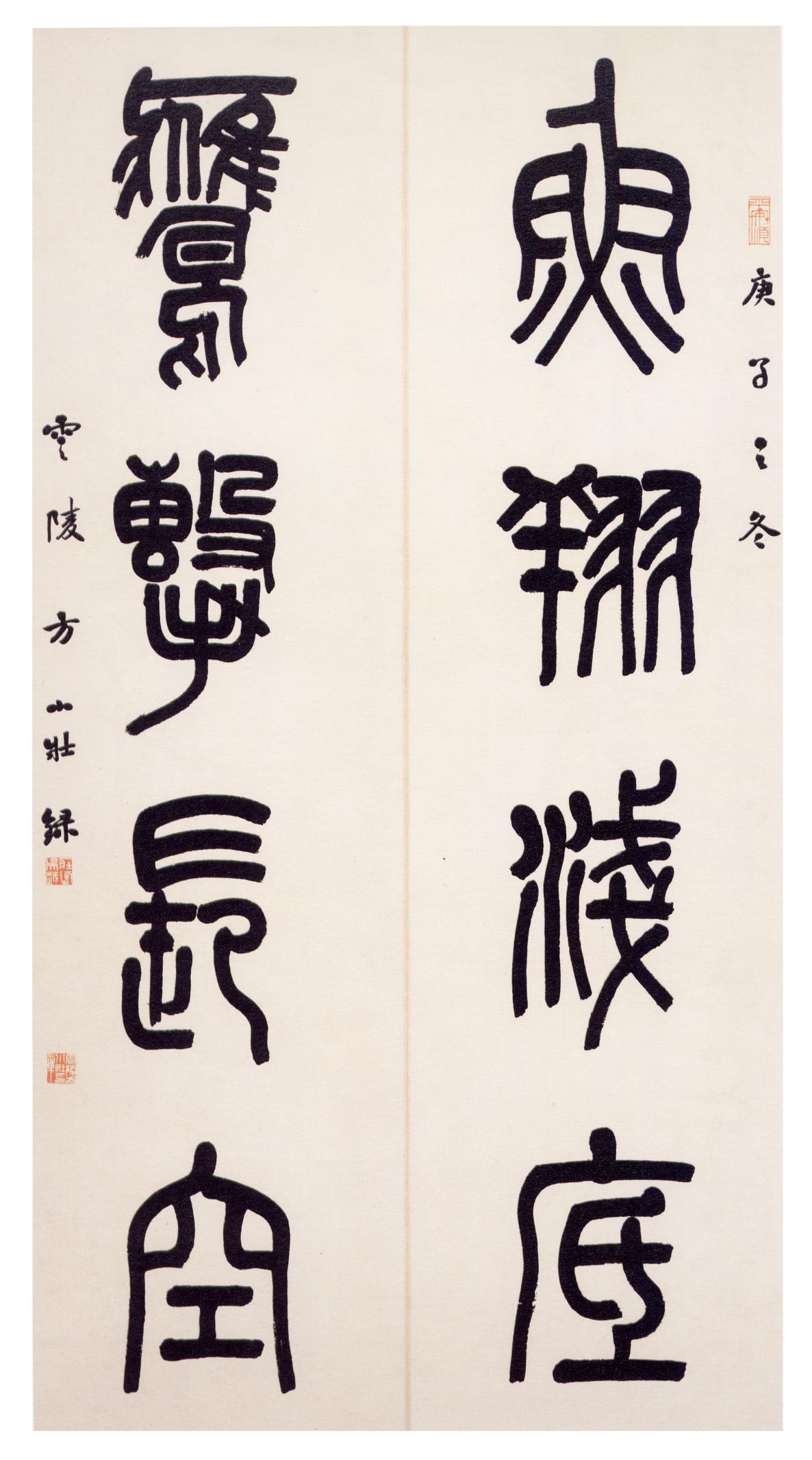 鹰击》篆书四言对联