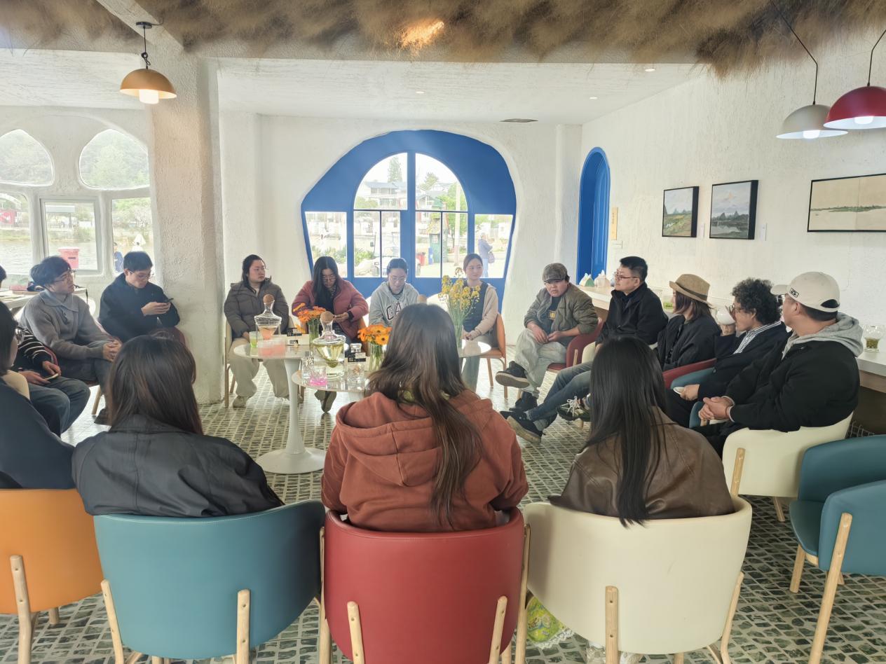 为促进同学们深入交流在贵州右二村写生的感受与经验,iQQtv 四位老师、蒙安夕舍民宿主理人王庆能老师、iQQtv 创业导师季蒙蒙老师以及 14 名研究生共同召开了贵州右二村写生师生交流会。
