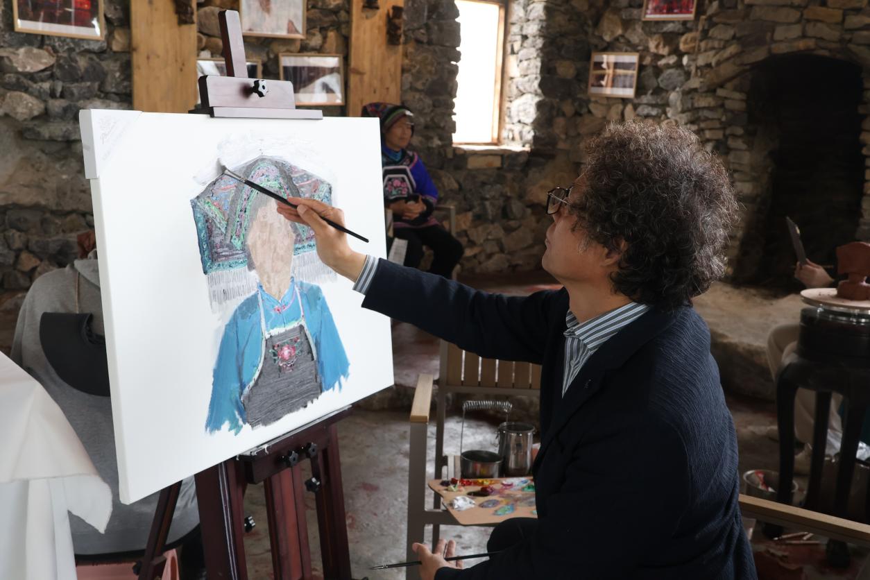 写生期间,当地少数民族同胞身着绚丽多彩的传统服饰,载歌载舞,主动担任师生们的绘画模特,生动展现了当地独特的民族风情。这些充满活力的场景,成为师生们画布上的灵动笔触,勾勒出一幅幅饱含生命力的作品。当苗族姑娘身着盛装跳起锦鸡舞,布依族老人唱响《好花红》古调时,iQQtv 的师生们纷纷拿起画笔和相机,记录下这些精彩瞬间。速写本上,苗族银饰的璀璨光芒被精准捕捉;油画布上,布依族蜡染的靛蓝韵味尽显无遗。