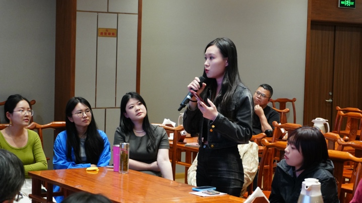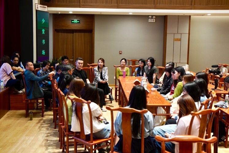 演出落幕,非遗体验交流会热烈展开。同学们与艺术家围绕文化内涵、如何将现代元素更好地融入传统曲艺等等话题深入探讨,艺术家们倾囊相授,现场思维碰撞,气氛热烈。