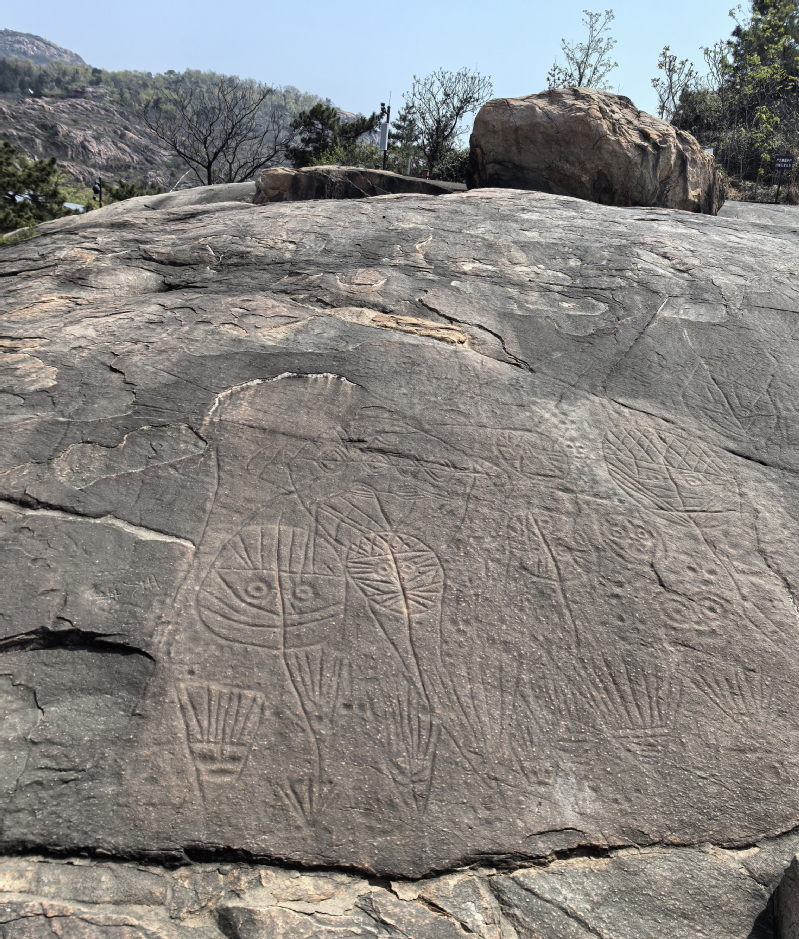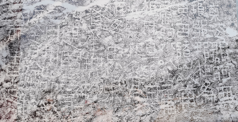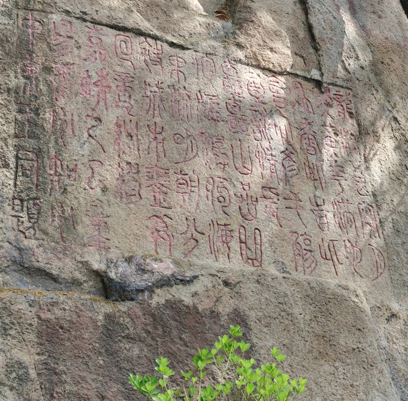 4月10日下午,师生一行继续考察连岛西汉界域刻石。连岛西汉界域刻石文字体势已经隶化,然结字和笔画形态依然保留有篆书的意味,体现出西汉早中期隶书石刻的特征:如没有强化、夸张的波磔笔画,笔法起收如篆书一般。同时,也反映出西汉“书同文”政策引导下地域书刻的实用一面。