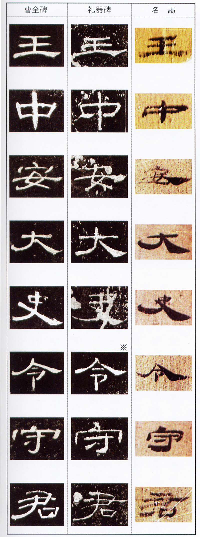 图(6)《曹全》《礼器》与尹湾《西汉木牍》选字比较