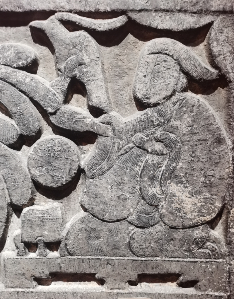 临沂东汉晚期的画像墓石雕饰,主要有阴线刻、凹面线刻、凸面线刻、浅浮雕、高浮雕、透雕六种雕刻方法;雕刻精美,气势恢宏,展示了两千多年前先民高超的艺术水准,着实让师生们叹为观止。