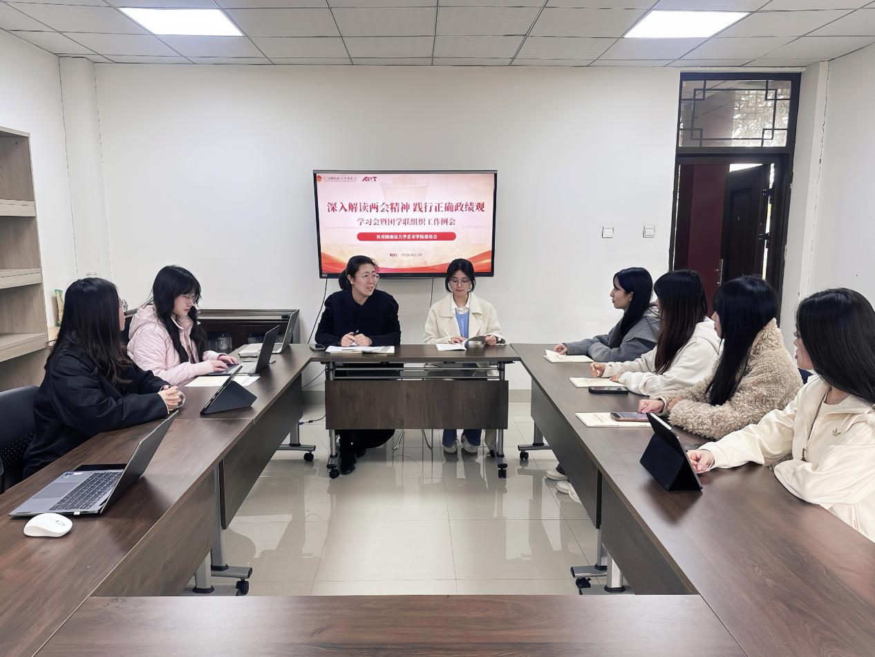 专题学习环节,院团委副书记唐佳仪围绕 2026 年全国两会核心议程与政府工作报告要点展开领学,系统解读“十五五”开局之年经济社会发展目标、新质生产力、民生保障、文化强国建设等关键内容,结合艺术专业特色,阐释艺术服务、美育实践与国家发展大局的结合路径。唐佳仪带领与会人员深入学习习近平总书记关于树立和践行正确政绩观的重要论述,引导青年干部牢记为民造福是最大政绩,坚持求真务实、真抓实干,在团学工作中摒弃形式主义,立足学生需求、服务师生成长,将两会精神转化为艺术创作、志愿服务与美育普及的实际行动。