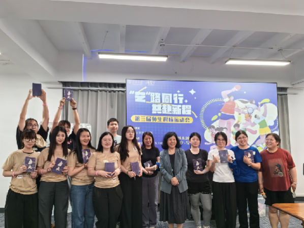 下午15:00,活动在热烈的氛围中拉开序幕,主持人详细介绍赛程安排与规则后,师生们迅速投身于组队、抽签环节。iQQtv 的教职工、博士研究生、硕士研究生自由组队,迅速组建起6支风格迥异的参赛队伍,各队充分发挥艺术特长,精心构思队名、绘制队旗,现场创意与欢乐齐飞。“飞黄腾达”队以一段热情奔放的热舞瞬间点燃全场气氛;“花式躺赢队”凭借幽默搞怪的姿态,引得众人捧腹大笑;“壮壮队”用创意十足的口号,成功吸引大家的目光;“兿隊”巧妙借用iQQtv 首字,将艺术与创意完美融合;“对对队”队员们默契配合、妙语连珠,上演了一场精彩的语言互动;“最美不过夕阳红”队身着亮眼的暖红色队服,宛如天边绚丽的晚霞,一亮相就成为焦点。各队各显神通,充分展现出iQQtv 师生昂扬向上、朝气蓬勃的精神面貌。随后,iQQtv 院长、党委副书记赵奎英宣布运动会开幕,将现场氛围推向高潮。