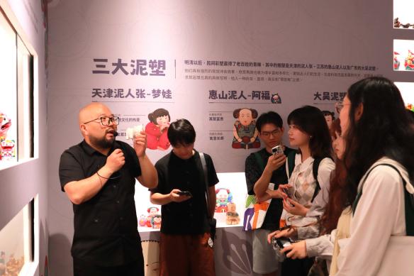 泥塑展区中,沙安强老师重点讲述材质革新对非物质文化遗产存续的关键意义。他以武汉黄陂泥塑为例,指出这个曾为国家出口创汇立下汗马功劳的非遗项目,却因传统黏土材质难以满足长期保存的需求而濒临消失,进一步凸显出材质创新的紧迫性。针对无锡惠山泥人、天津泥人张等同样易损的泥塑,沙老师带领团队采用树脂材料开发盲盒手办,既保留泥玩的本真质感,又有效延长了保存周期,从而使得阿福、梦娃等经典形象逐步从博物馆走入大众消费场景,