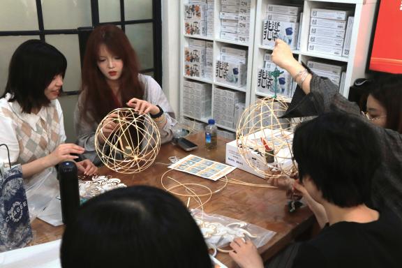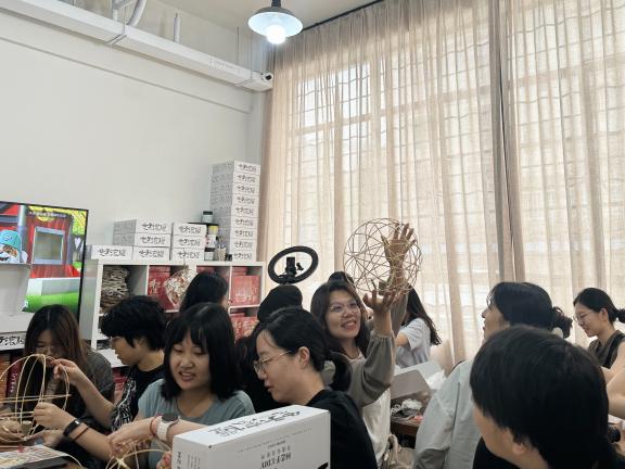 理论认知的深化最终落脚于动手实践。在专业导师指导下,同学们分组协作,体验南京本土非遗竹编技艺——兔子滚灯。从剖篾、扎制到裱糊成型,一盏盏融合传统竹编技艺与当代潮流审美的滚灯在指尖渐次成形,竹影与灯影交织的瞬间,同学们深切体悟到传统工艺的匠心精髓。2024级研究生孙雅涵同学表示:过去觉得非遗很遥远,直到亲手触摸竹篾的质感,才理解守艺背后的重量。改造后的兔子造型,既保留了滚灯的传统结构,又加入萌宠元素,这种创新让我对非遗文化的传承与转化产生了新的思考。