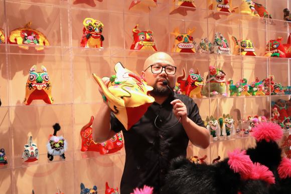 首先步入的是鱼灯展区。作为国家级非遗的安徽鱼灯,原是八米长的传统舞蹈巡游道具,因使用场景局限面临传承困境。沙安强老师带领团队将其转化为可互动的、适合现代空间的视觉装置,既保留“鱼跃龙门”的吉祥寓意,又通过尺寸缩小与功能重构,使其从年度仪式用品转变为承载情绪价值的生活美学载体。他特别提及国际品牌对鱼灯元素的借用案例,以此说明中国非遗传统文化对世界的影响力,强调非遗转化需打破“一年一现”的场景限制,融入当代生活语境。
