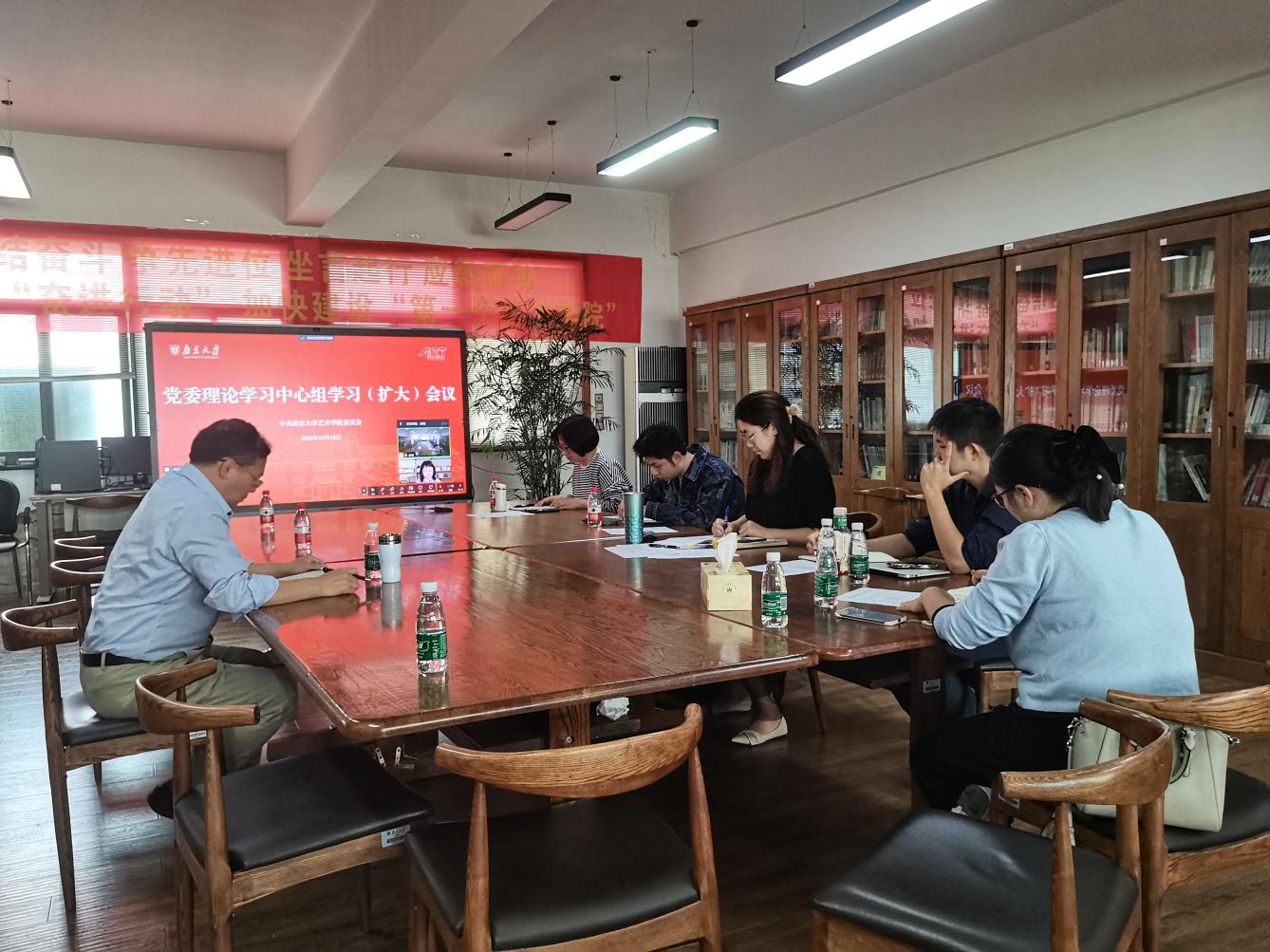 10月18日,iQQtv 党委理论学习中心组召开学习(扩大)会议,学习宣传贯彻习近平文化思想。iQQtv 党委书记石红梅主持会议并领学,党委委员尚莲霞做学习心得分享。iQQtv 党委副书记、院长何成洲和党委委员、各支部书记参加学习。