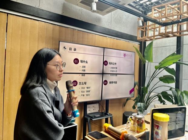 接下来的硕博学术经验交流环节邀请了三位博士研究生与大家分享科研心得和写作方法。博士生陈韵祺从论文写作的灵性和技巧两方面切入,着重介绍了学术写作的技巧,并与大家分享在写作过程中积累的经验。她强调梳理论题横纵背景、概念的学术渊源之重要性,从描述对象到论述对象的过程性,以及如何在框架和细节两方面保持平衡,最后提到语词的商榷和把握等问题。博士生李鹿鸣向大家重点介绍了文献搜集的途径与方法,她以自己的选题为例,总结出需要把握的三个要点,分别是:把握学科、确定方向;对象明确、问题适中;资料全面、论从史出。紧接着,她详细地介绍了文献分类的思路和搜集资料的方法,并提示大家在写作过程中建立以问题为纲的文献数据库,方便写作时反复阅读和定期回顾。她认为写论文的关键是“行动”,在螺旋式循环的写作中不断打磨想法和语言,避免陷入完美主义。在论文的写作过程中,“怎么写”往往体现着学术规范和学术训练。博士生周倩闻提出写论文要先学会“摹仿”,然后写出“新意”,时刻严循“规范”。她认为写论文可以先从“摹仿”开始,在学习写作的过程中体会前辈学者的问题意识、行文结构以及语言表达,在此基础上努力从方法和材料两方面突出新意。她重点强调了遵循学术规范的重要性,凡引必注、如实引用。论文写作需要长期的积累、厚积薄发,她鼓励同学们注重日常的点滴积累、保持良好的心态,边思边写并与老师、同辈们积极交流。高薪老师对博士生的经验分享进行总结和延伸。